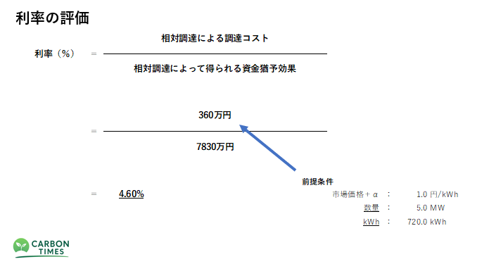 その前提をもとに計算を行うと、利率は4.60%となります。