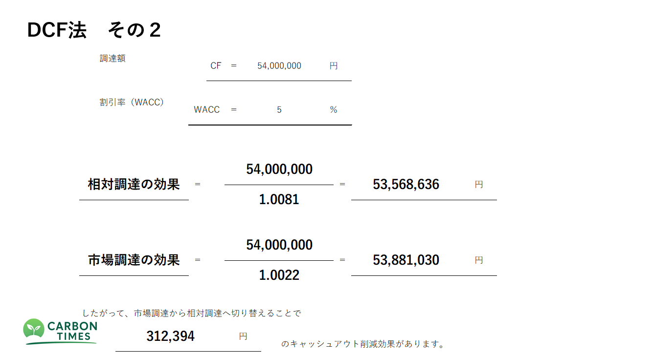 今回は、相対調達と市場調達による効果をDCF法によって評価をしたいと思います。
