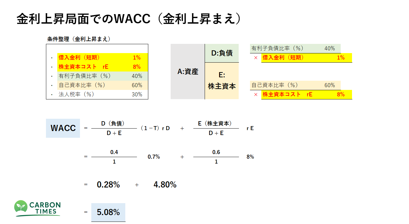 ・借入金利(短期 rD:1% (負債コスト) ➡ 4%
